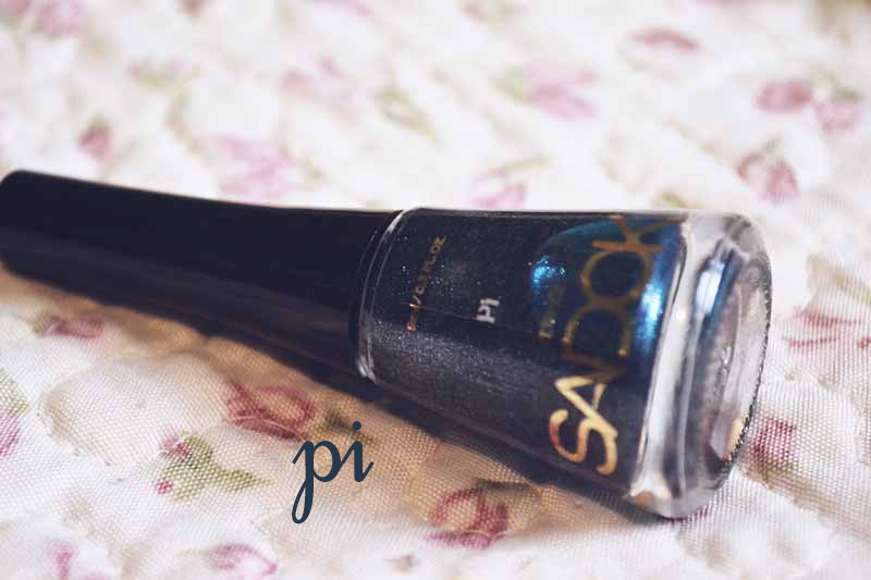 Pi sem dúvidas é um dos meus preferidos entre os dez testados! Não consigo definir a cor dele, e por isso eu digo que é cor de cauda de sereia haha. No sol ele fica bem azulzinho e na sombra fica com alguns tons de verde e turquesa ♥ Ele é totalmente cheio de glitters bem pequenos, que deixa uma efeito lindo. A esmaltação foi bem tranquila, mesmo ele sendo um pouco grosso. Em algumas unhas eu usei duas camadas bem grossas e em outras três camadas mais finas. As unhas que estavam com três camadas secaram mais rápido, então sugiro que usem camadas finas hehe. Preciso comentar sobre o brilho dele? ♥