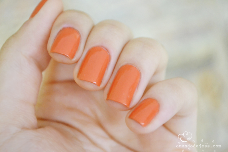 Diário de Bordo é um esmalte laranja que sinceramente não sei definir muito bem o tom.Também contém um shimmer dourado bem discreto, esse quase não dá pra ver mesmo na luz do sol. Achei a cor dele bem bonita e apesar de ser um laranja, não é nada “cheguei” haha o que é bem difícil de ser encontrado.