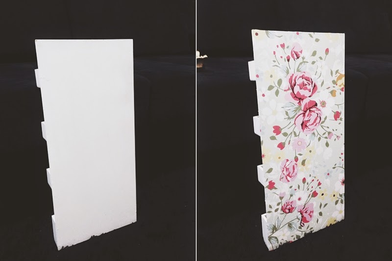 Aproveitei o que sobrou do meu papel de parede florido, para dar um up no organizador. Essa parte da porta é removível e por isso a aplicação foi super rápida e simples.