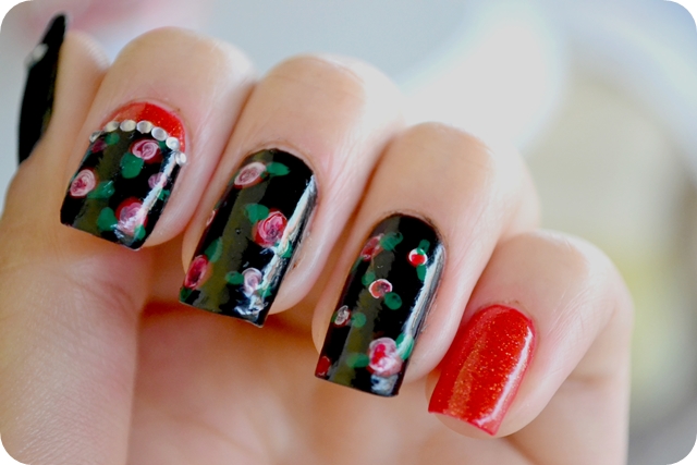 Outro queridinho que eu usei foi esse azul, duma marca japonesa chamada AC. Não sei o nome e nem nada dele porque tudo no rótulo está em letrinhas japonesas haha. Meus esmaltes da AC merecem um post sozinhos, são lindos! Para fazer as bolinhas usei só a parte de trás de um pincel e um palito de madeira com a pontinha um pouco lixada (boleador é para os fracos)